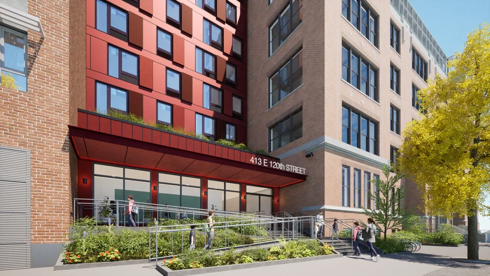 Ascendant Neighborhood Development and co-developers, The Community Builders (TCB), will develop the site located at 413 East 120th Street, to be known as The Beacon. The East Harlem Multi-Service Center site will give rise to an affordable 250-home residential building, of which 75 homes or 30 percent will be set aside for households that have experienced homelessness. The new residential building will be constructed at the back of the existing East Harlem Multi-Service Center, which will be rehabilitated and expanded. The original architecture of the multi-service center will be preserved and include additional space for after-school programming, a new atrium, green space, and the “Wagner Walk” walk path connecting the residential building to the multi-service facility. The renovated facility will continue to host the nonprofit organizations serving East Harlem.